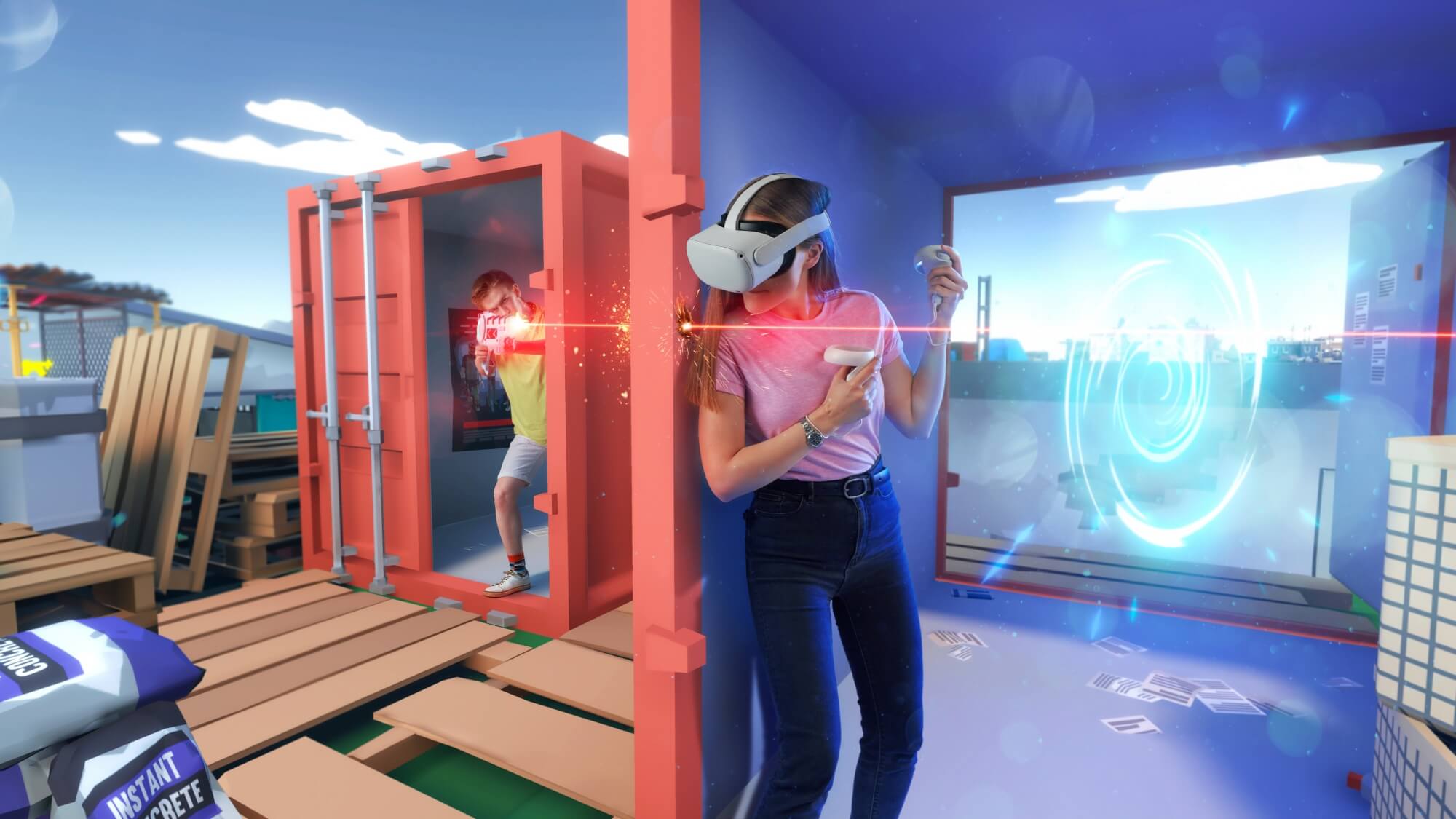 Budur - kublardan yaradılmış gözəl azad dünya. Burada hər şey tam təsəvvür etdiyiniz kimidir - qarlı dağlar, gözəl meşə, rahat ev! Bəs həqiqətən kimsə bu idiliyə əl atmağa qərar veribmi? Deyəsən, çağırılmamış qonaqlar gəlib. Özünüzü blasterlərlə silahlandırmaq vaxtıdır! Məkanlar arasındakı portallar isə xəritədə sürətlə hərəkət etməyinizə kömək edəcək. Tanış kubik qrafika və arena ətrafında simsiz hərəkət oyunçulara özlərini sevimli oyunlarının bir hissəsi kimi hiss etməyə kömək edəcək. Siz “hər kəs özü üçün” rejimində dostlarınızla döyüşə və ya “komandaya qarşı komanda” oynaya bilərsiniz.